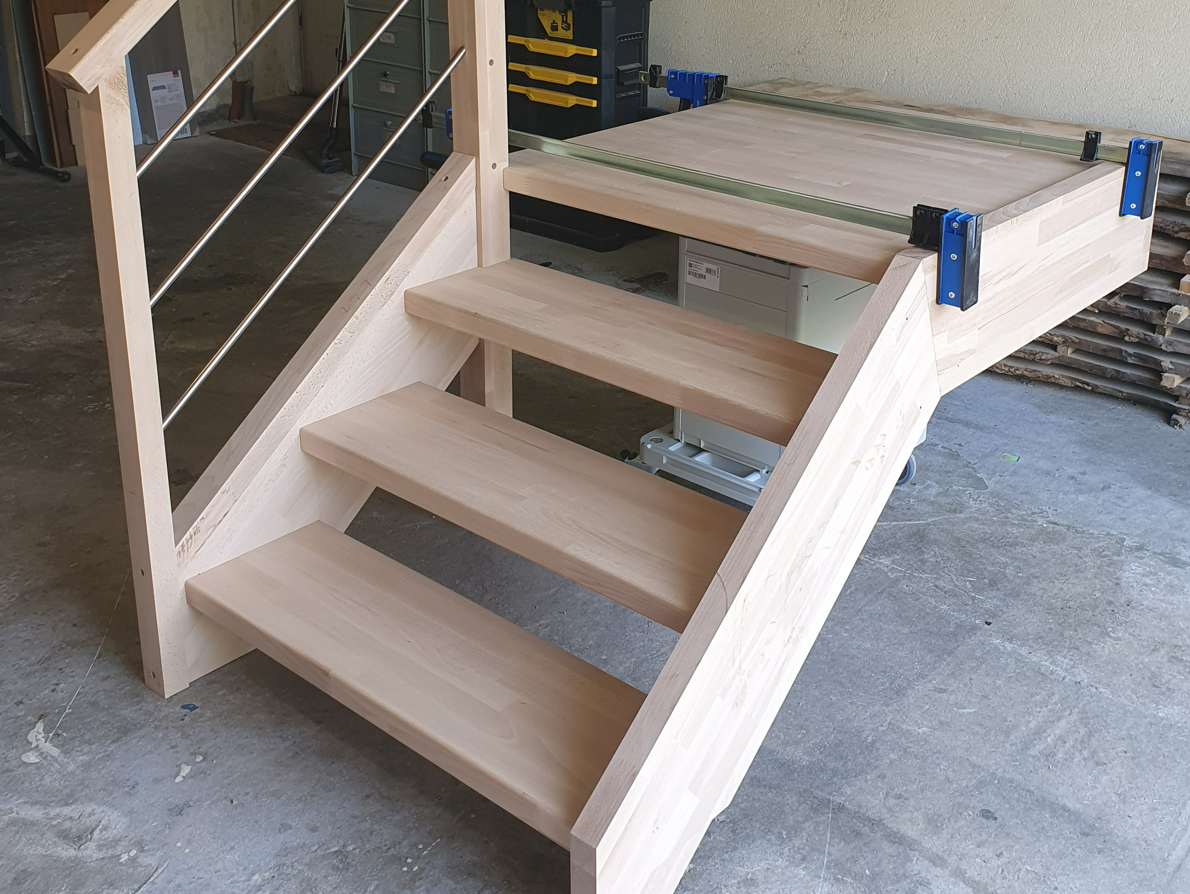 Je réalise principalement des ouvrages en bois massifs et dérivés du bois (mdf, mélaminés, stratifiés).